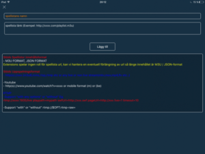Fyll i namnet smartiptv och nedan klistrar du in länken (M3U-länk, som du får av oss när du blir kund) och trycker sedan på Lägg till.