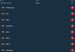 6. Gå in i fjärrspellistan igen, starta din spellista du nyss lagt till och den ska se ut så här med en massa olika länder att välja mellan. Gå till valfritt land och välj den kanal du vill ha.